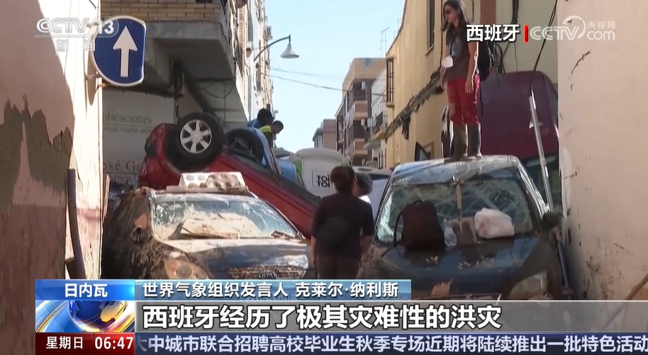 央視網(wǎng)消息:從10月29日開始的強(qiáng)降雨在西班牙東南部引發(fā)嚴(yán)重洪災(zāi),巴倫西亞自治區(qū)受災(zāi)最為嚴(yán)重,洪水所到之處橋梁垮塌、車輛傾覆、農(nóng)田被淹、村莊被淤泥覆蓋。11月2日,聯(lián)合國(guó)世界氣象組織表示,氣候變化正在加劇類似西班牙洪災(zāi)這樣的極端天氣。