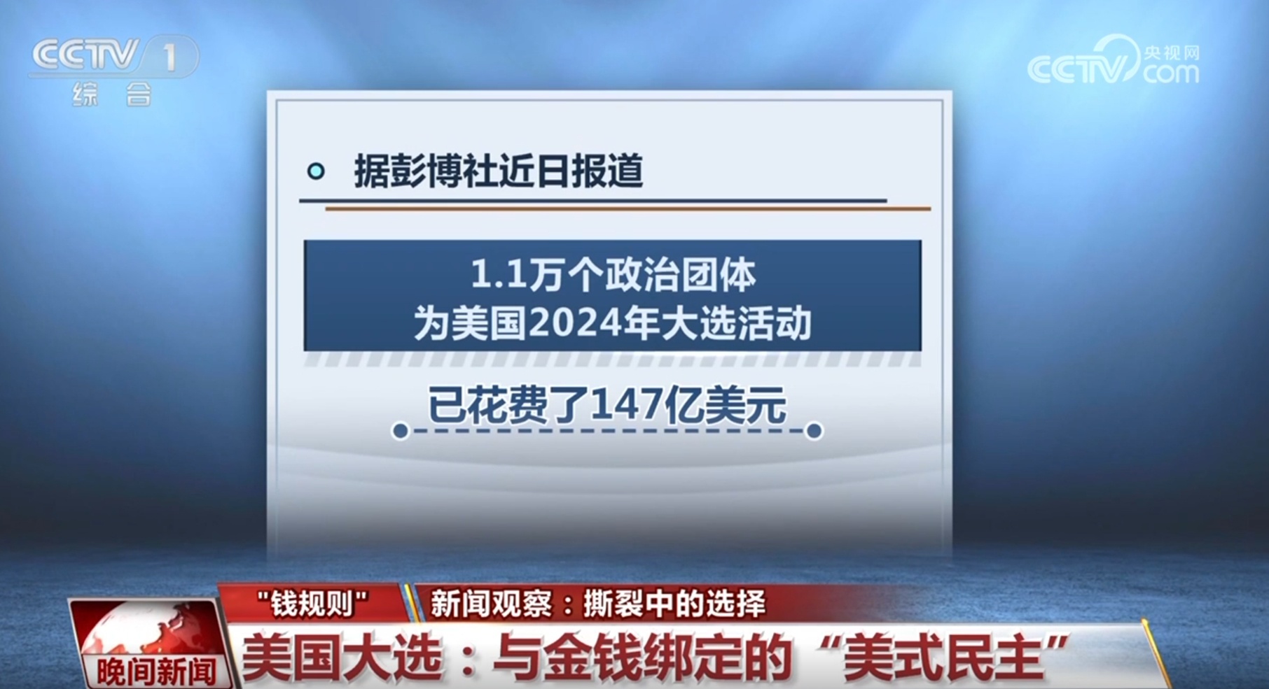 有美國(guó)研究機(jī)構(gòu)預(yù)測(cè),2024年將是美國(guó)史上最昂貴選舉周期,總支出預(yù)計(jì)將高達(dá)159億美元。據(jù)彭博社近日?qǐng)?bào)道,1.1萬(wàn)個(gè)政治團(tuán)體為美國(guó)2024年大選活動(dòng)已花費(fèi)了147億美元。