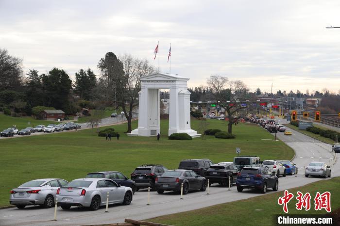 資料圖為2024年2月10日拍攝的位于加拿大不列顛哥倫比亞省素里市(Surrey)的和平拱門(mén)加美邊境口岸。中新網(wǎng)記者 余瑞冬 攝