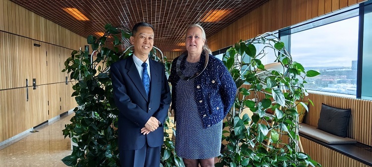 | 中國(guó)駐瑞典大使崔愛(ài)民會(huì)見(jiàn)瑞典西約特蘭省議會(huì)主席本特松。中國(guó)駐瑞典大使館供圖 |