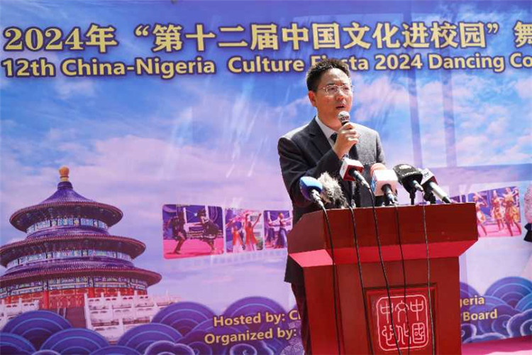 中國(guó)駐尼日利亞大使館文化參贊兼尼日利亞中國(guó)文化中心主任楊建興致辭。尼日利亞中國(guó)文化中心供圖