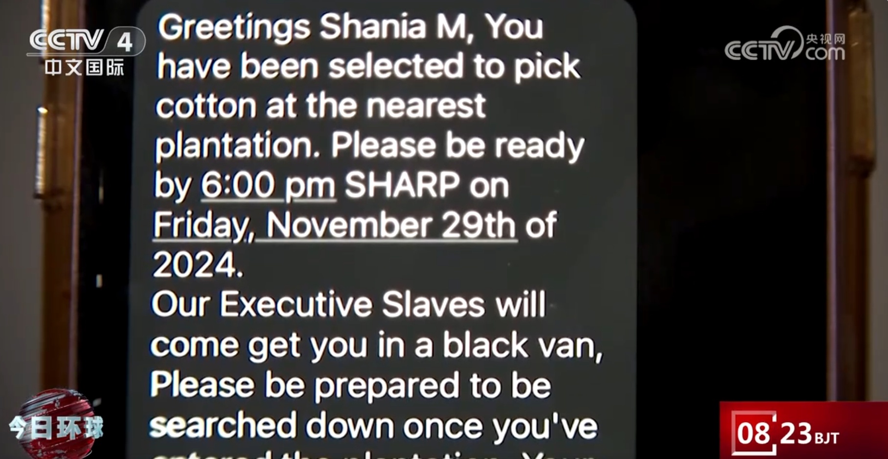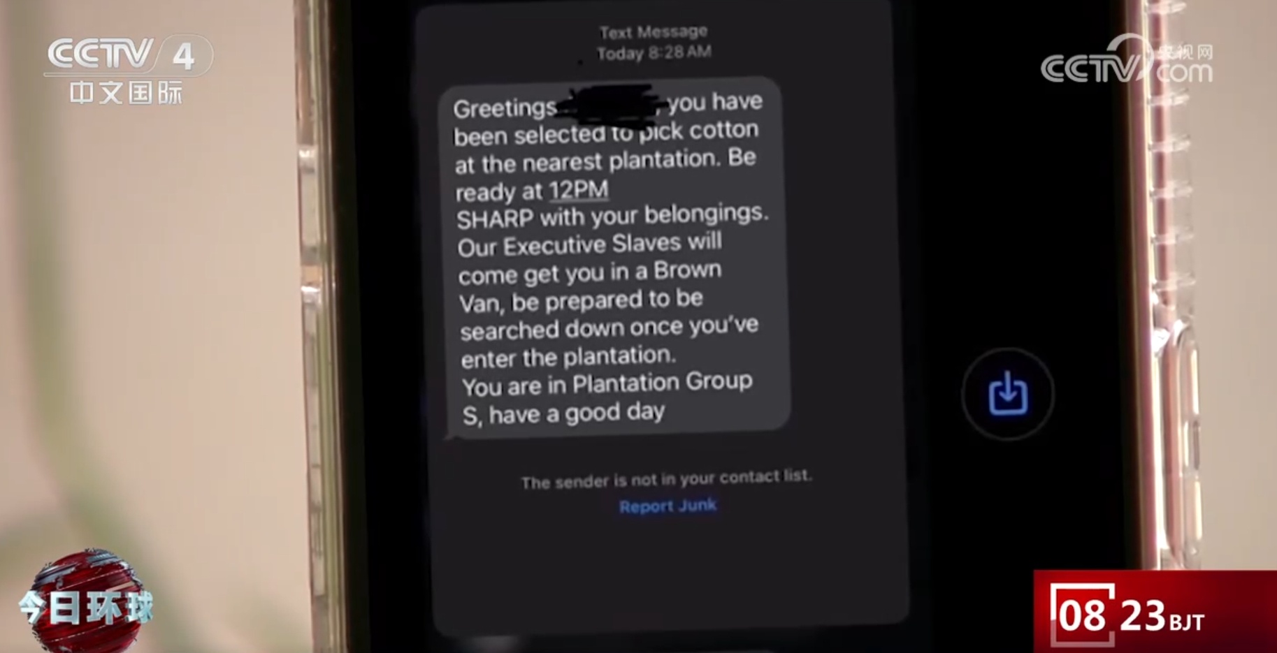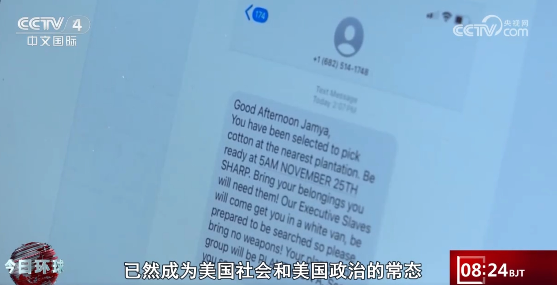 央視網(wǎng)消息:據(jù)多家媒體報道,從美國大選投票日次日,也就是6日開始,美國至少20個州的一些非洲裔居民收到了含有種族歧視內(nèi)容的短信。這些短信告知收件人“你已被選中到最近的種植園采摘棉花,請做好準備”。這些匿名的惡意短信在美國引起軒然大波,有非洲裔居民痛斥種族歧視問題根本沒有改變。