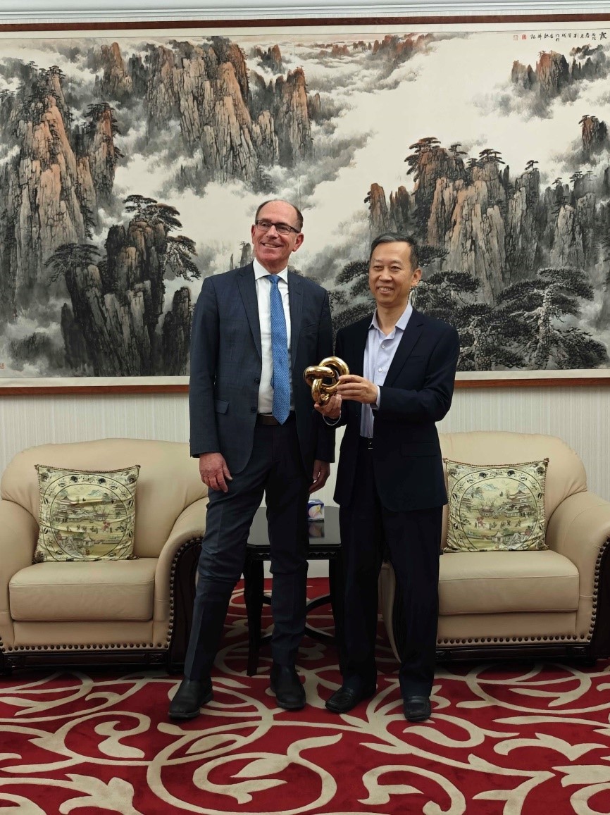 中國駐瑞典大使崔愛民會(huì)見瑞中貿(mào)易委員會(huì)主席佩爾松。中國駐瑞典大使館供圖