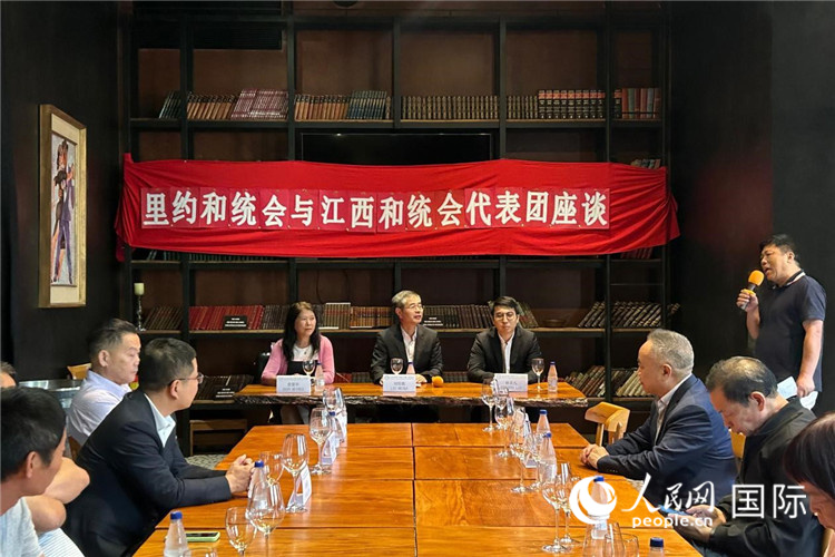當(dāng)?shù)貢r(shí)間11月23日,正在巴西里約熱內(nèi)盧訪問(wèn)的江西和統(tǒng)會(huì)代表團(tuán)與里約和統(tǒng)會(huì)舉行座談會(huì)。人民網(wǎng)記者 陳一鳴攝