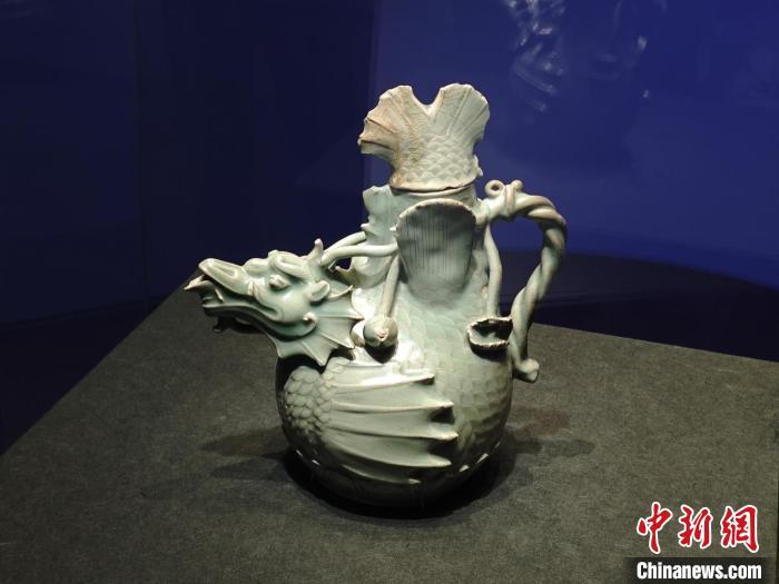 圖為高麗象形青瓷特展展品“青瓷魚(yú)龍形注子”。季龍雨 攝