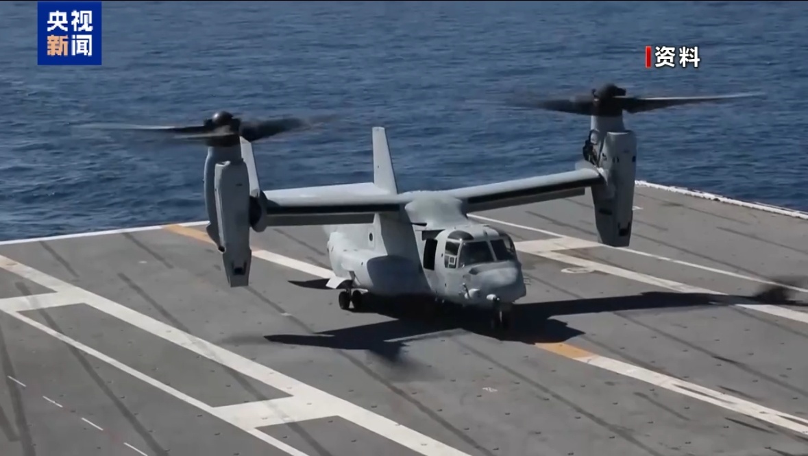 據(jù)美聯(lián)社報道,美國一架搭載白宮工作人員與政府官員的“魚鷹”運(yùn)輸機(jī),25日因安全問題中斷行程。有目擊者稱,這架“魚鷹”右側(cè)發(fā)動機(jī)下方出現(xiàn)火苗。