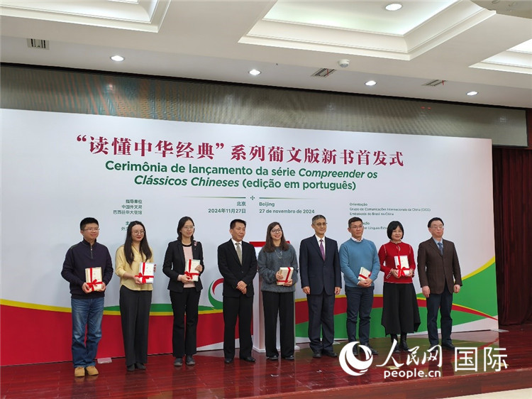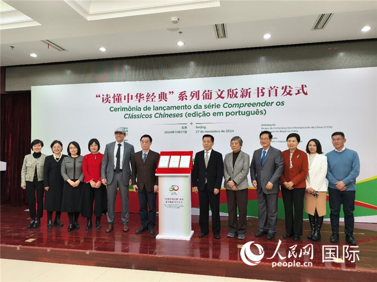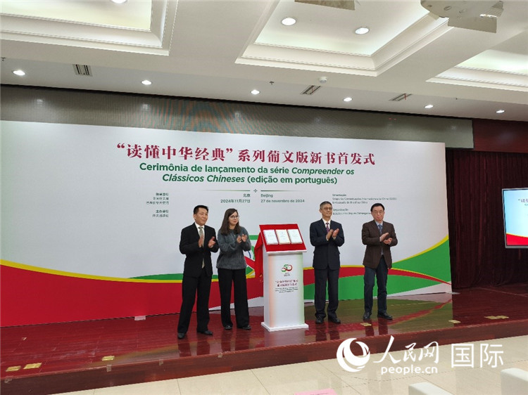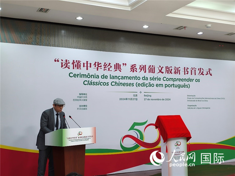 人民網(wǎng)北京11月28日電 (記者魯揚)“讀懂中華經(jīng)典”系列葡文版新書首發(fā)式27日在京舉行。中國外文局總編輯高岸明、外交部拉美司參贊張文偉、巴西駐華大使館文化處主管裴若涵、巴西漢學家沈友友以及來自社科院和多個高校的專家學者40余人出席了首發(fā)式。