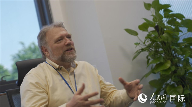 在康寧顯示科技(重慶)有限公司,軻寶華接受記者采訪。人民網(wǎng)記者 蘇纓翔攝