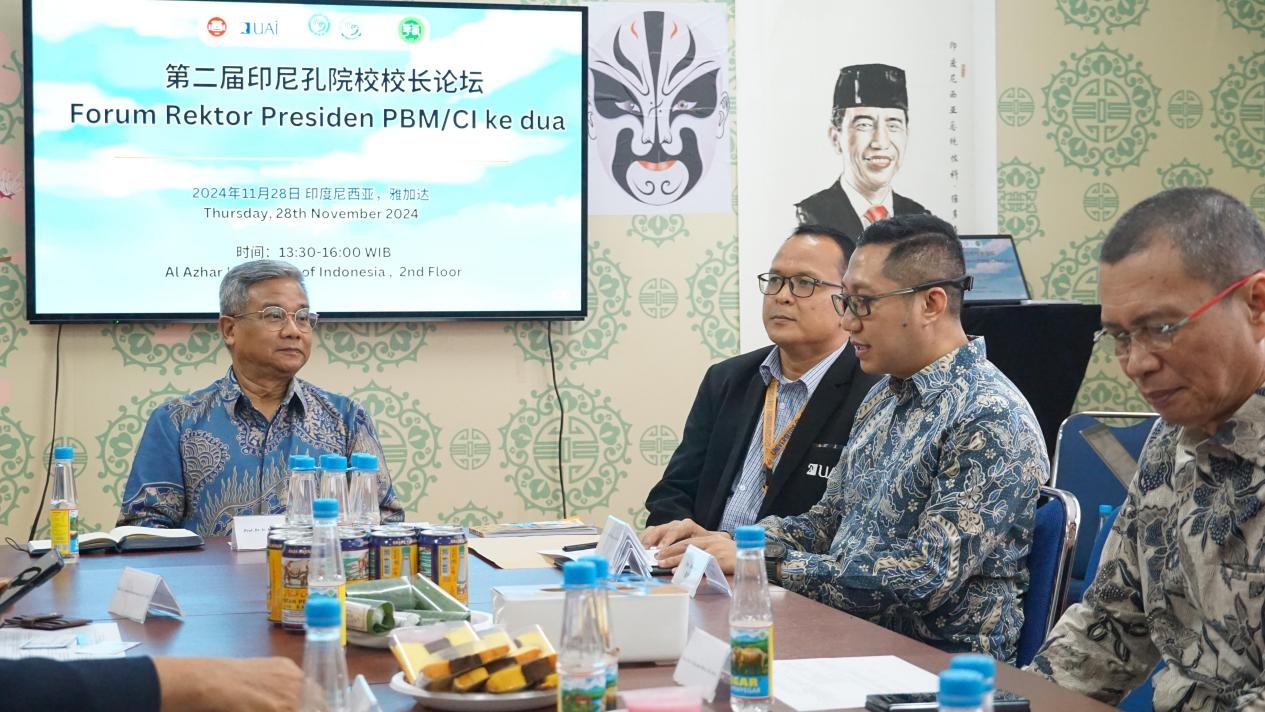 論壇首項議程為各高校校長分享各自孔院發(fā)展情況以及中文系在孔院的協(xié)助下快速發(fā)展的情況。阿拉扎大學(xué)校長阿塞普首先介紹了該??鬃訉W(xué)院自成立以來在漢語教學(xué)、文化交流等方面取得的豐碩成果。隨后,各高校的校長或代表分享了各自孔子學(xué)院的辦學(xué)歷史、特色課程設(shè)置、師資隊伍建設(shè)等方面的經(jīng)驗。與會代表還深入探討了如何進一步擴大中文系規(guī)模,提升教學(xué)質(zhì)量,為印尼培養(yǎng)更多高素質(zhì)的中文人才等議題。