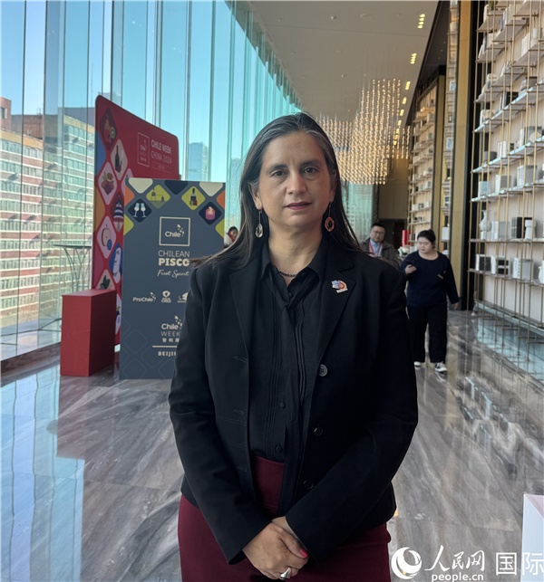 智利農(nóng)業(yè)部副部長伊格納西亞·費爾南德斯·格迪卡(Ignacia Fernández Gatica)接受人民網(wǎng)記者專訪。人民網(wǎng)記者 吳思萱攝