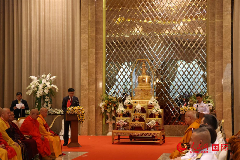 陳瑞峰代表中方致辭表示,中泰是親密友好鄰邦,“中泰一家親”歷久彌新。佛牙舍利是中國國寶和世界佛教信眾崇奉的圣物,相信佛牙舍利來泰供奉這一佛教盛事將進(jìn)一步增進(jìn)兩國佛教界傳統(tǒng)法誼,促進(jìn)兩國人民民心相通。