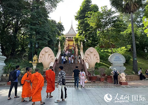 游客在金邊塔山寺游玩。人民網(wǎng)記者 簡承淵攝