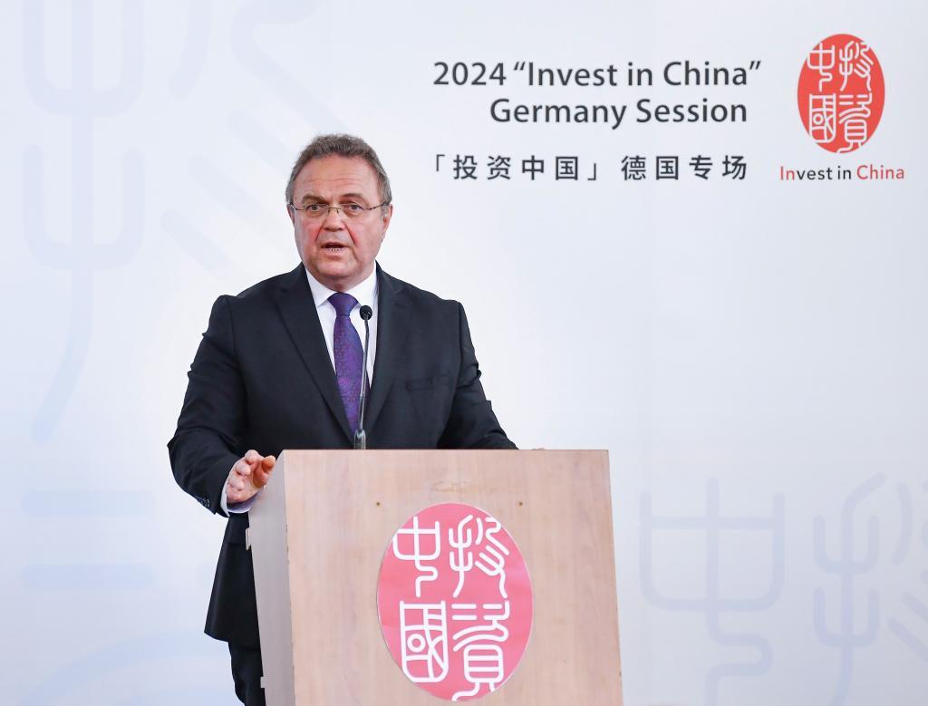4月5日,德國(guó)聯(lián)邦議院德中議會(huì)小組主席弗里德里希在德國(guó)斯圖加特舉行的2024“投資中國(guó)”系列活動(dòng)德國(guó)專場(chǎng)上致辭。新華社記者任鵬飛攝