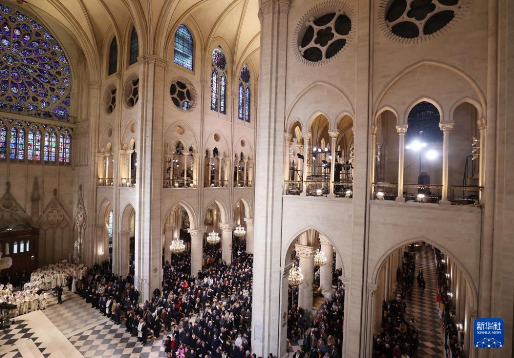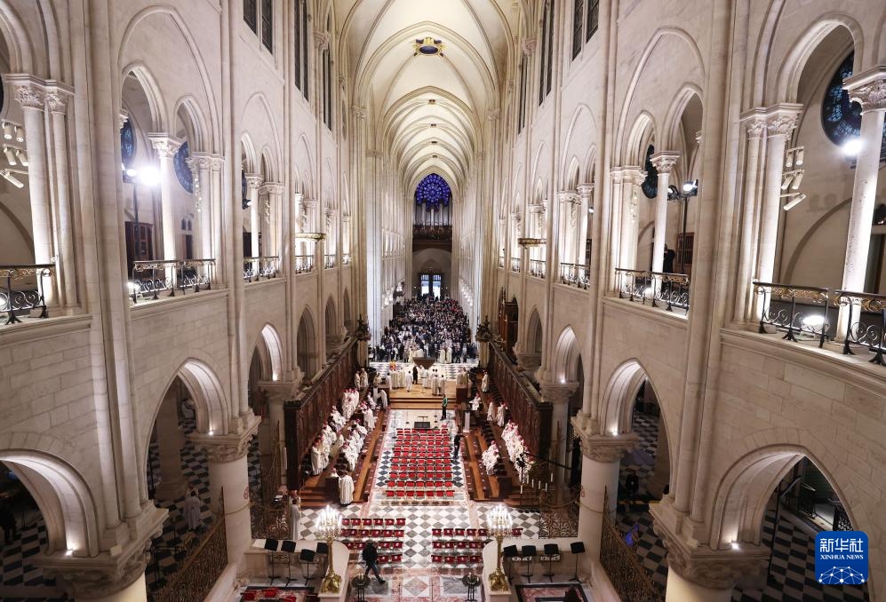這是12月8日拍攝的巴黎圣母院重新開放儀式現(xiàn)場(chǎng)。