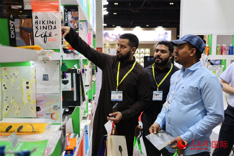 國(guó)際客商在展會(huì)上挑選中國(guó)商品。人民網(wǎng)記者 張志文攝