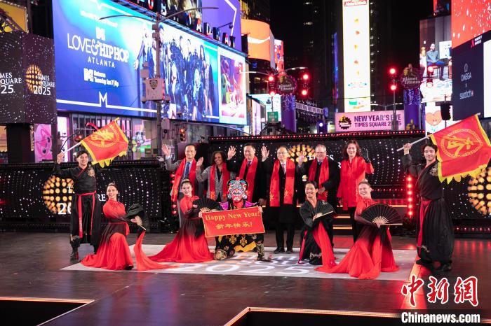 當?shù)貢r間2024年12月31日,美國紐約市一年一度的時報廣場跨年夜慶祝活動以“品味非遺·喜迎春節(jié)”文藝表演拉開序幕。 中新社記者 廖攀 攝