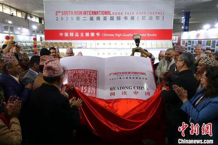 1月1日,與會嘉賓為2025第二屆南亞國際書展(尼泊爾)中國展區(qū)揭幕?!≈行律缬浾?崔楠 攝