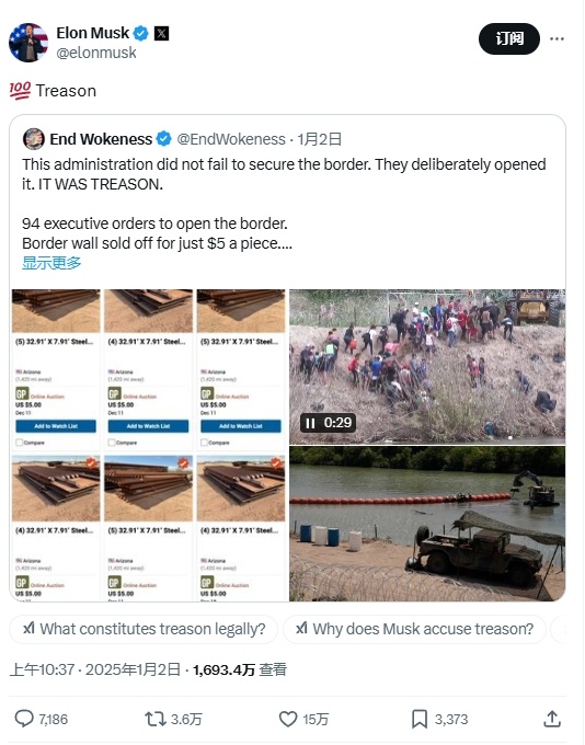 這位用戶總結(jié)道:“這屆政府并沒有確保邊境安全,他們是故意開放邊境的,這是叛國(guó)行為?!?/p>