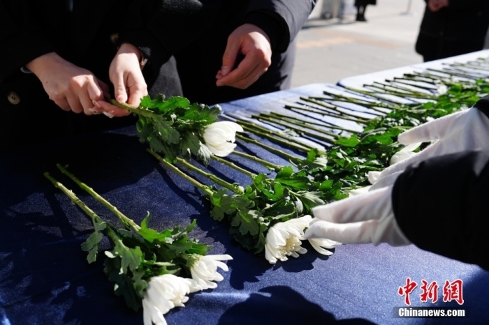 當(dāng)?shù)貢r間2024年12月31日,韓國民眾在首爾市設(shè)立的靈堂領(lǐng)取鮮花,哀悼失事客機(jī)遇難者。中新社記者 劉旭 攝
