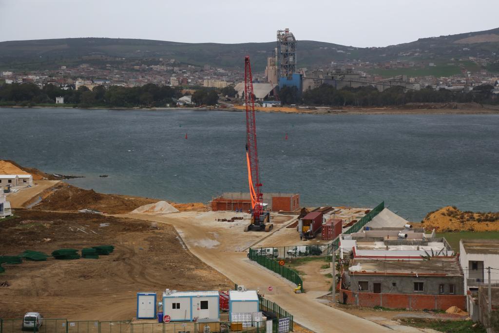 圖為2024年12月20日在突尼斯北部城市比塞大拍攝的比塞大大橋項目工地。新華社記者黃靈攝