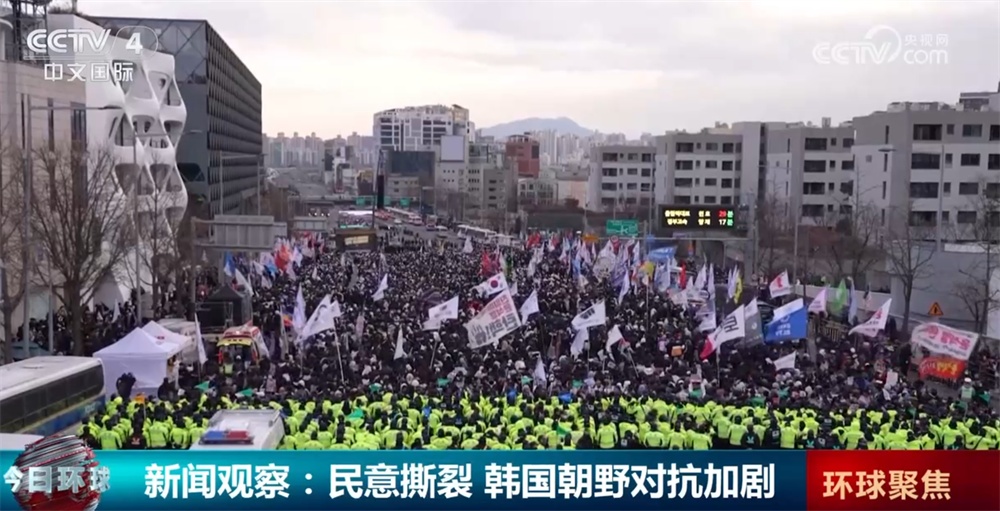對尹錫悅的逮捕令簽發(fā)后,支持和反對尹錫悅的韓國民眾聚集在總統(tǒng)官邸附近抗議示威,雙方隔街對峙。據(jù)韓國媒體報道,3日,公調(diào)處執(zhí)行逮捕行動的當(dāng)天,有超過1萬名支持尹錫悅的民眾來到現(xiàn)場。而反對尹錫悅的民眾也在距離總統(tǒng)官邸較近的地鐵站集會,敦促逮捕尹錫悅。