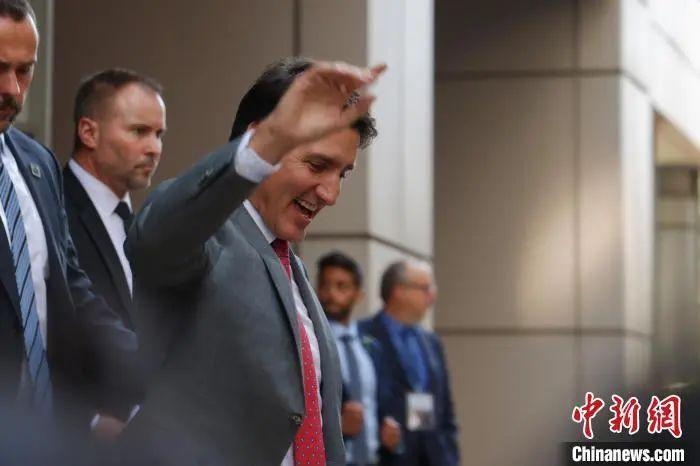 資料圖:當(dāng)?shù)貢r間2023年9月15日,加拿大總理特魯多在多倫多出席完一場活動離場時向民眾揮手。中新社記者 余瑞冬 攝