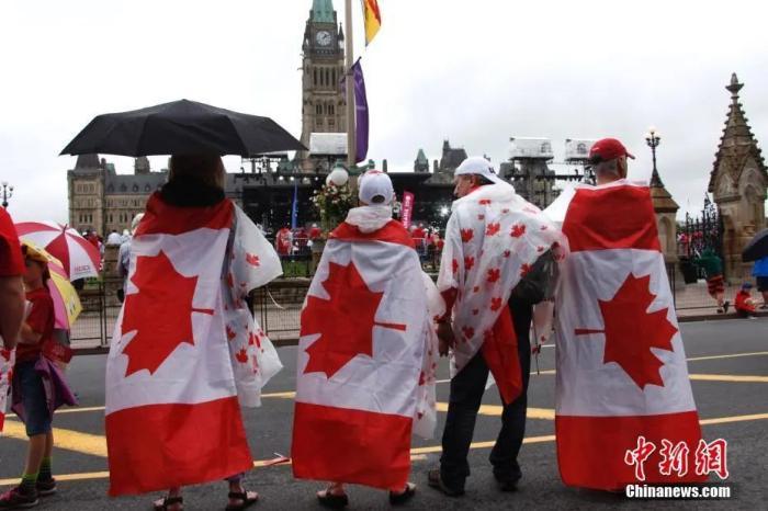 資料圖:當(dāng)?shù)貢r間2017年7月1日,加拿大迎來聯(lián)邦成立150周年紀(jì)念。加拿大全國各地舉行了諸多慶祝活動。圖為身披加拿大國旗在民眾在渥太華國會山前等待國慶慶典舉行。中新社記者 余瑞冬 攝