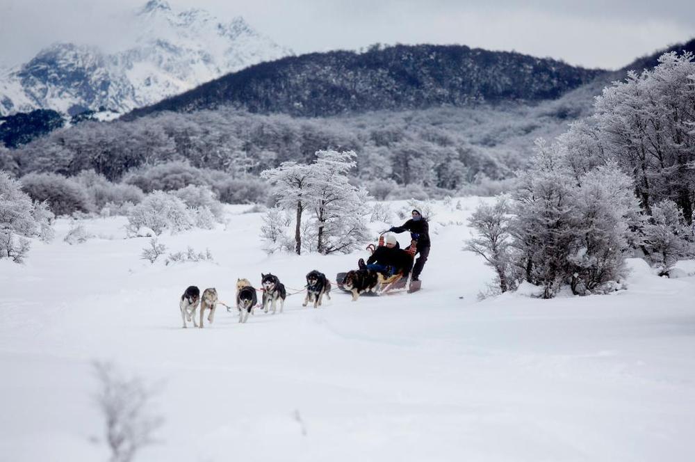 2018年7月8日,在阿根廷火地島首府烏斯懷亞,游客體驗狗拉雪橇。在南美大陸最南端的烏斯懷亞距南極洲只有800公里。新華社發(fā)(馬丁·薩巴拉攝)
