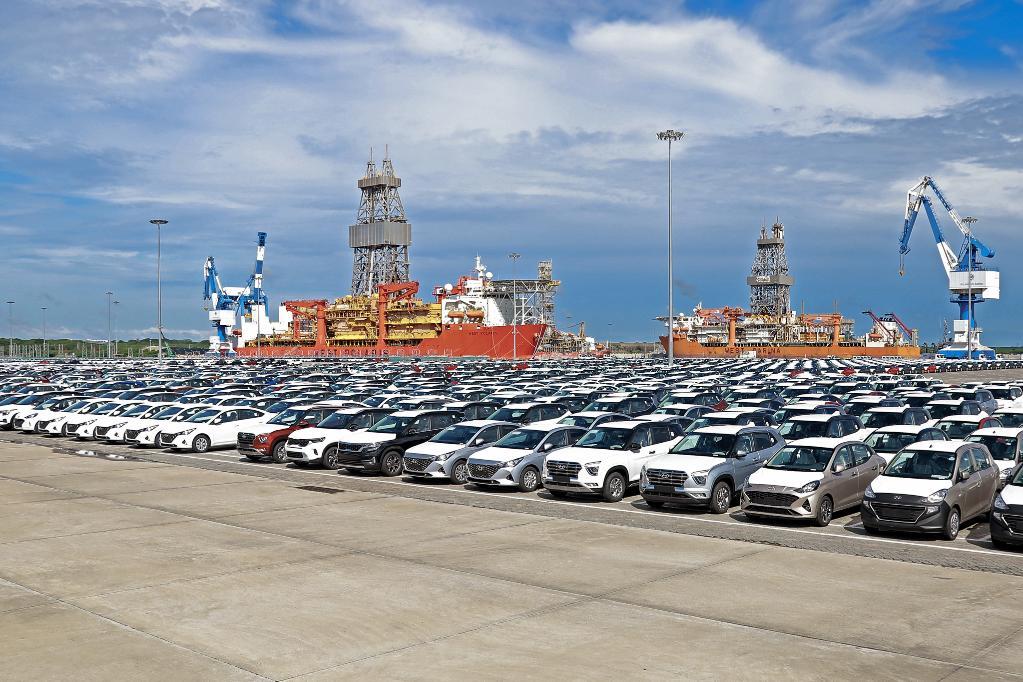 這是2021年12月14日拍攝的斯里蘭卡南部漢班托塔港堆場。新華社發(fā)(斯里蘭卡總理府媒體處供圖)
