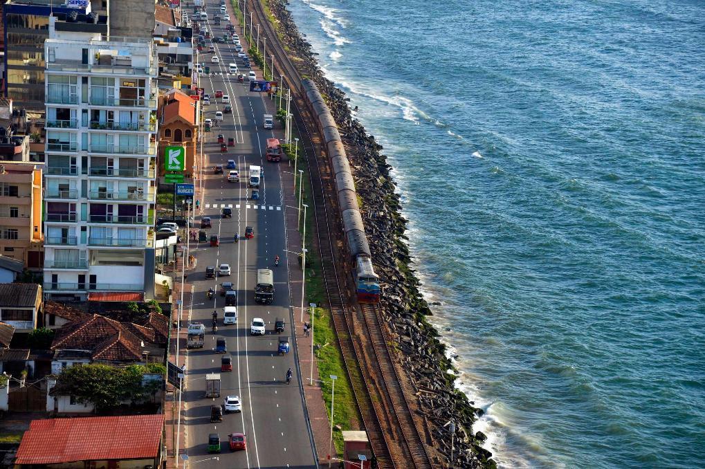 這是2024年12月23日在斯里蘭卡首都科倫坡拍攝的海邊小火車。新華社發(fā)(加揚·薩米拉攝)