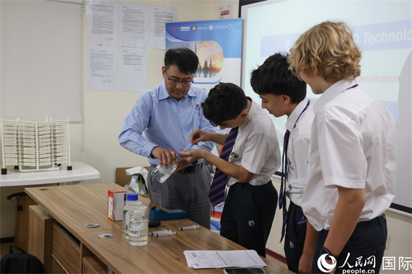 活動期間,中國電建的工作人員為20多名來訪師生介紹展示了哈斯彥海水淡化項目的技術亮點和建設情況。通過參與海水淡化技術實驗、互動答題、現場參觀等方式,學生們進一步掌握海水淡化的基本知識以及在促進可持續(xù)發(fā)展等方面的重要意義。