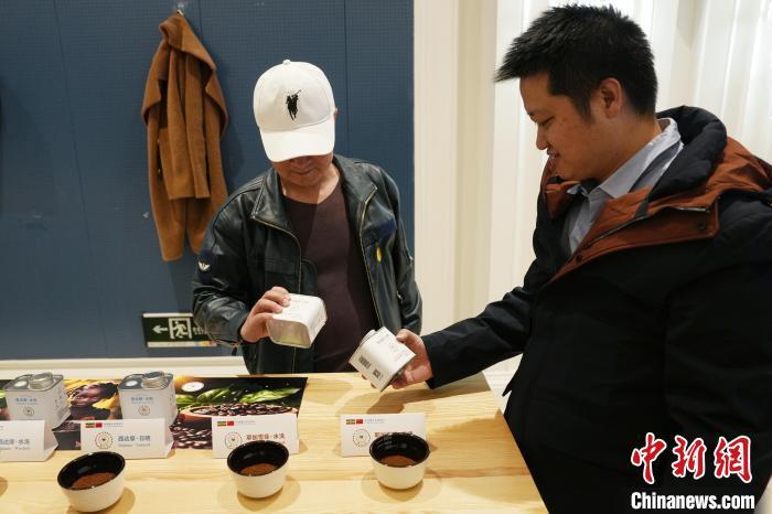 1月19日,埃塞俄比亞國(guó)家館開(kāi)館儀式暨雕豆師(Coffee Carver)中國(guó)上市發(fā)布會(huì)在北京舉行。圖為嘉賓了解原產(chǎn)于埃塞俄比亞的咖啡豆產(chǎn)品。 記者 張祥毅 攝
