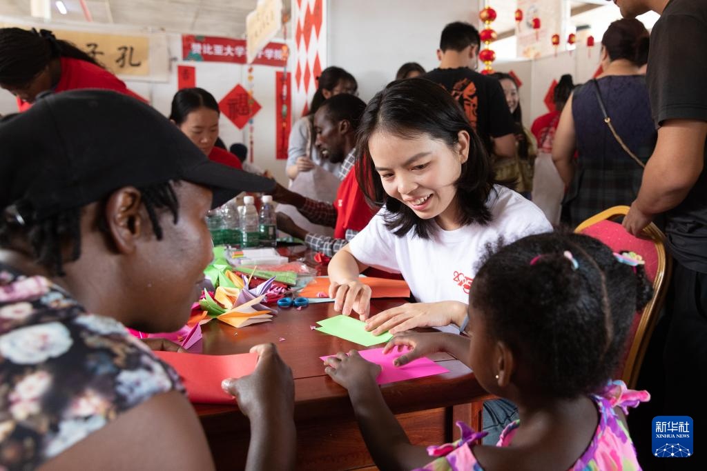 在廟會現(xiàn)場的贊比亞孔子學院展位前,人頭攢動。包括書法體驗、剪紙、折紙展示和猜字謎等豐富的文化互動項目,吸引人們紛紛參與體驗。一位贊比亞媽媽帶著孩子在老師指導下完成她的第一個中國結(jié)作品,她高興地說:“原來中國藝術(shù)這么有趣!希望我的孩子有一天可以去孔子學院學習?!?/p>