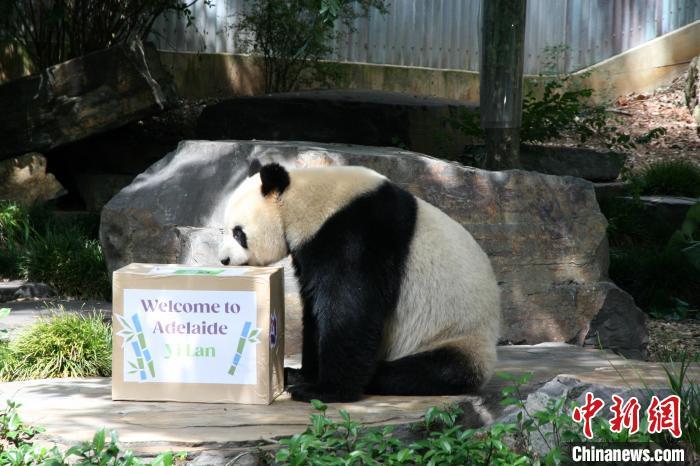 當(dāng)?shù)貢r(shí)間1月21日,澳大利亞阿德萊德動(dòng)物園舉行了歡迎中國(guó)新熊貓開館儀式。圖為新大熊貓“怡蘭”在儀式上亮相。中新社記者 顧時(shí)宏 攝
