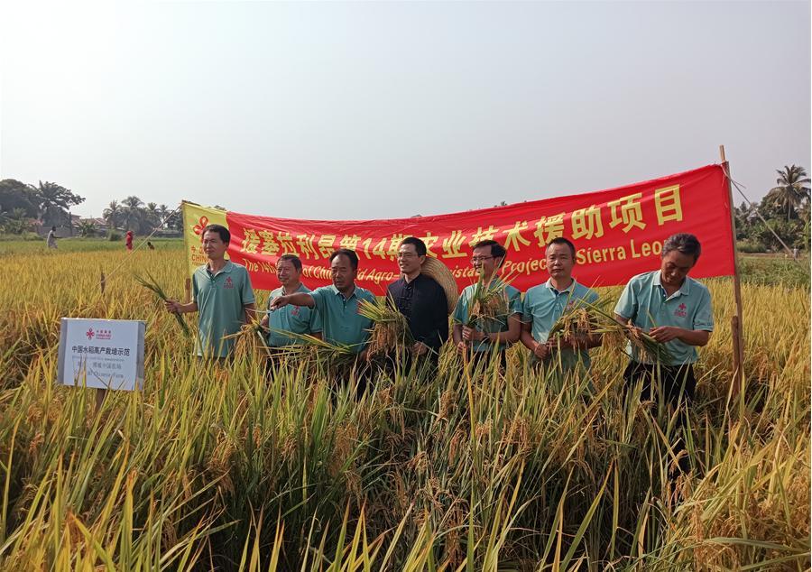 中國(guó)援塞拉利昂農(nóng)業(yè)專家組在塞南方省博城舉辦水稻種子捐贈(zèng)儀式。中國(guó)援塞農(nóng)業(yè)專家組供圖