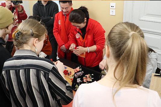 在羅素中學(xué),展現(xiàn)中國(guó)春節(jié)元素的“快閃”和臉譜、木工、絨花等非遺制作展示以及琵琶、笛子獨(dú)奏和武術(shù)表演等精彩節(jié)目引得學(xué)生們陣陣叫好,驚嘆于中國(guó)藝術(shù)的精美和深厚,久久不愿離去。