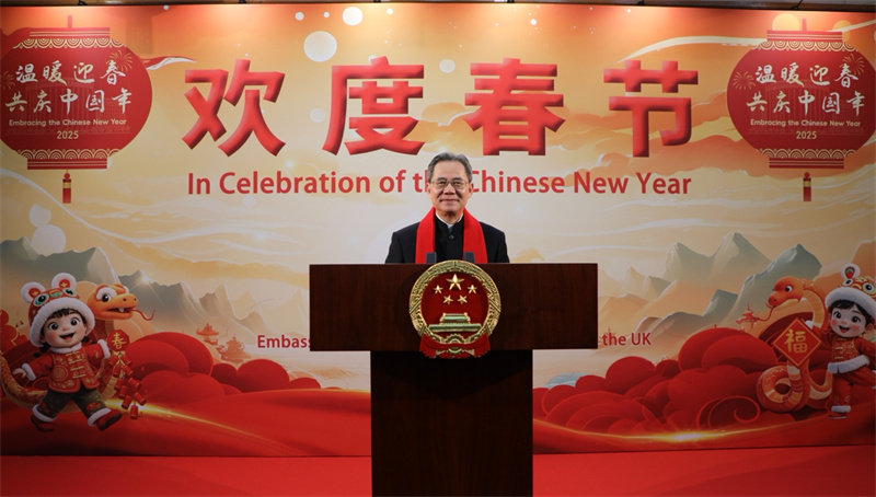 中國駐英國大使鄭澤光發(fā)表新春致辭。中國駐英國大使館供圖