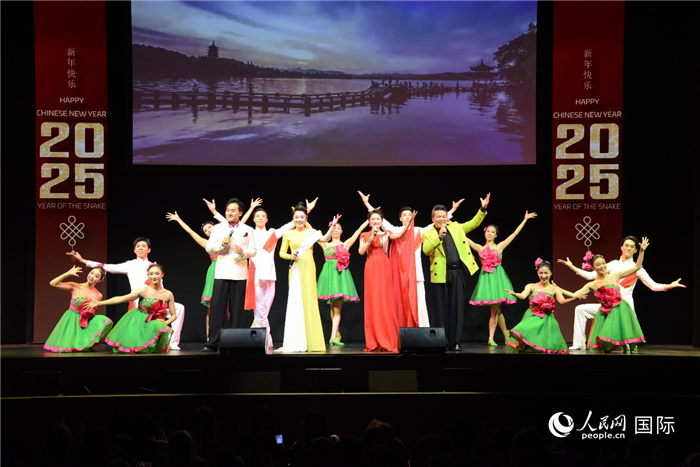來自杭州歌劇舞劇院的藝術(shù)家們獻上了一場融合舞蹈、戲曲、歌曲與雜技、魔術(shù)、民樂的精彩演出,傳統(tǒng)文化與現(xiàn)代藝術(shù)的完美結(jié)合贏得觀眾的陣陣掌聲,演出現(xiàn)場始終洋溢著喜慶熱烈的節(jié)日氣氛。