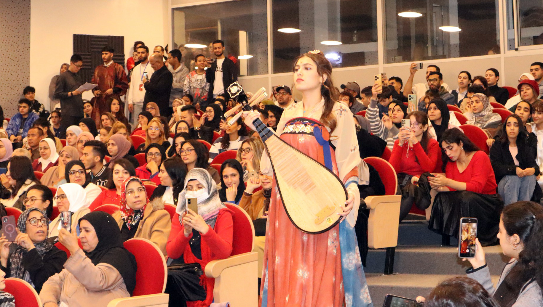 音樂節(jié)目中,孔院合唱團(tuán)帶來的《仰望星空》和《年少的你啊》通過溫暖的旋律和真摯的歌聲,唱出了青春的活力和對(duì)未來的希望??自簶菲魃绫硌莸摹兜秧嵐~音》將古箏與笛子優(yōu)美合奏,為現(xiàn)場(chǎng)觀眾呈現(xiàn)了一場(chǎng)中國(guó)傳統(tǒng)音樂的聽覺盛宴。值得一提的是,孔院師生演唱的摩洛哥歌曲《dirou niyya》,將中國(guó)春節(jié)的喜慶與摩洛哥音樂完美結(jié)合,瞬間點(diǎn)燃了現(xiàn)場(chǎng)觀眾的熱情。