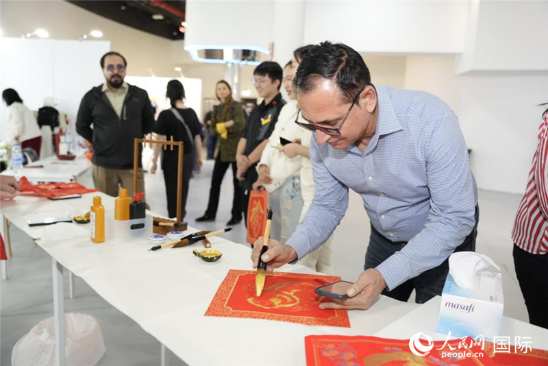 看電影《流浪地球2》,玩電游《黑神話:悟空》,體驗(yàn)書法剪紙,參與投壺蹴鞠……活動(dòng)現(xiàn)場,中外友人一同寫春聯(lián)、包餃子、過大年,將首個(gè)“非遺版”春節(jié)的濃濃暖意傳遞到每位在阿中資企業(yè)員工的心中。
