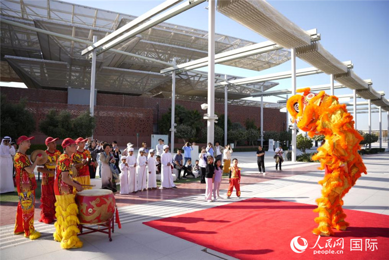 喜慶的舞獅表演吸引眾多阿聯(lián)酋當(dāng)?shù)孛癖娦蕾p。人民網(wǎng) 塔里克·易卜拉欣攝