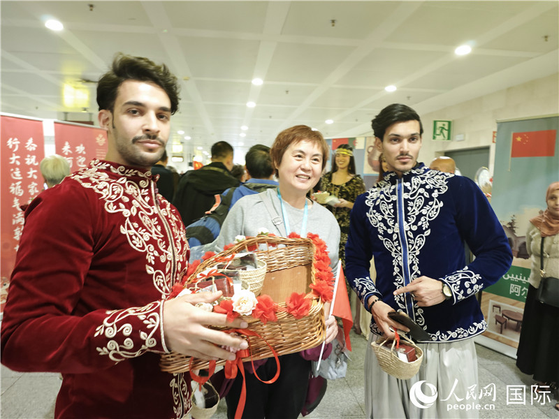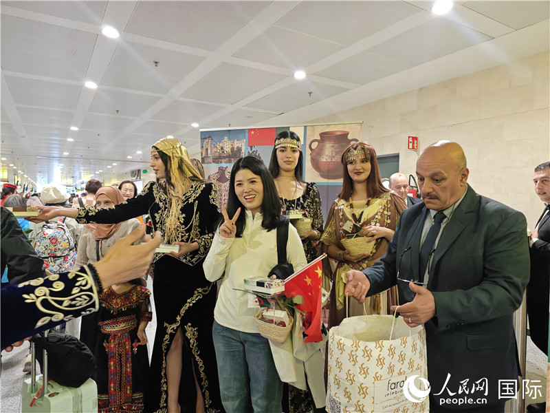 阿爾及利亞民眾著傳統(tǒng)服飾迎接中國游客來阿過大年。人民網記者 郝瑞敏攝