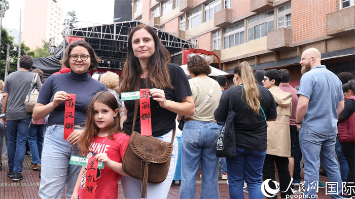 家住附近的拉爾西奧帶著自己的女兒來到攤位前,讓志愿者幫忙書寫了自己與女兒的名字。“豐富的表演、美妙的音樂,還有特色美食,我感受到了節(jié)日的喜慶?!崩瓲栁鲓W表示,希望明年能夠繼續(xù)擁有這樣的歡樂體驗。