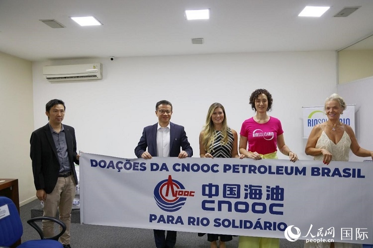 中國(guó)海油巴西公司向里約慈善協(xié)會(huì)捐贈(zèng)1000份生活基本物資籃。人民網(wǎng)記者 陳海琪攝