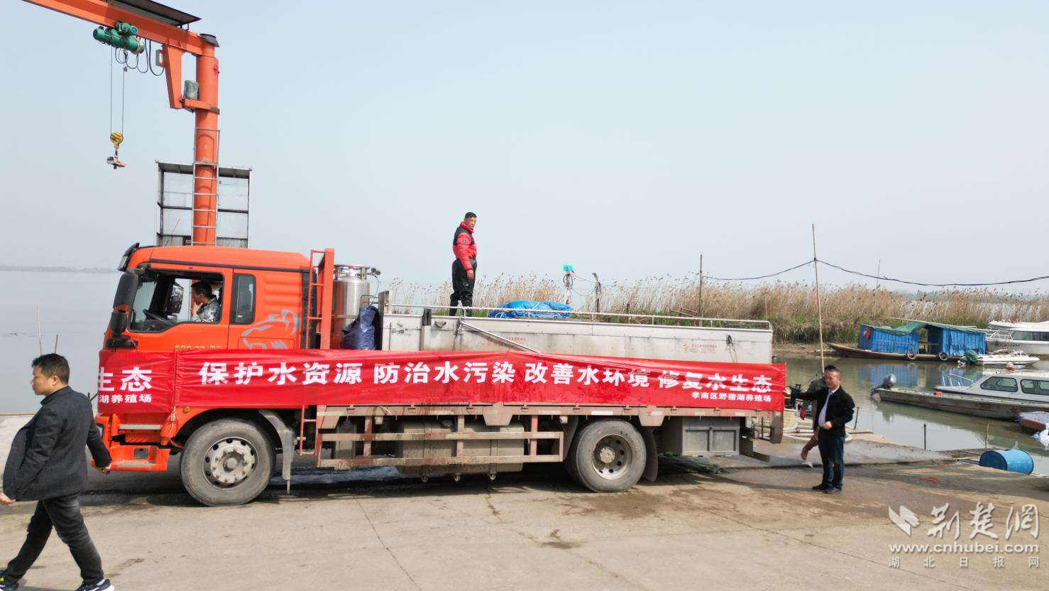 “花鰱(鳙魚)和鰱魚是典型的濾食性魚類,能高效攝食藍藻、浮游生物及有機碎屑,每生長1千克可消耗近40千克藻類,堪稱‘水體清道夫’?!毕膳B(yǎng)殖場負責人沈雙勝介紹,通過科學測算放流密度,既能實現(xiàn)“以魚控藻、以魚抑藻”的生態(tài)目標,又能為湖區(qū)漁業(yè)資源可持續(xù)利用奠定基礎(chǔ)?!?/p>