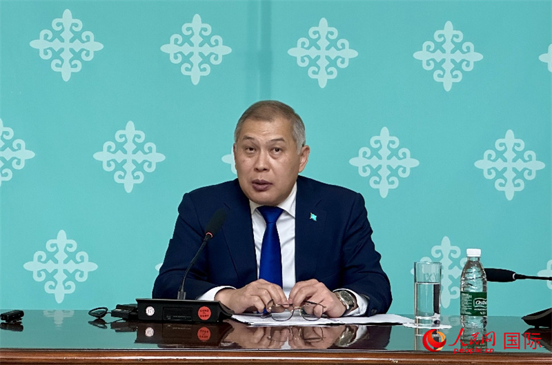 哈薩克斯坦駐華大使沙赫拉特·努雷舍夫在哈駐華大使館舉辦新聞發(fā)布會。人民網(wǎng) 阿爾達(dá)克攝