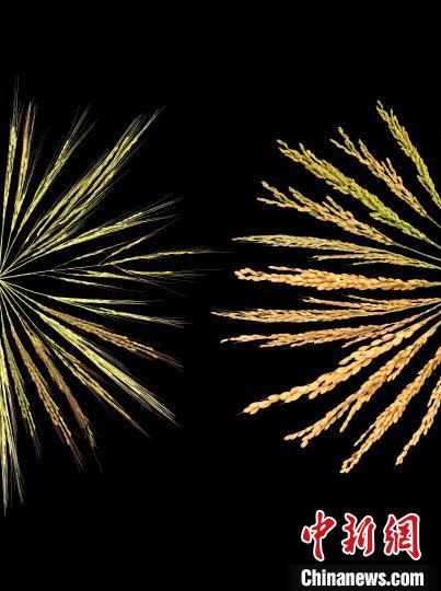 普通野生稻(右)與亞洲栽培稻(左)的稻穗對(duì)比展示。(中國(guó)科學(xué)院分子植物科學(xué)卓越創(chuàng)新中心供圖)