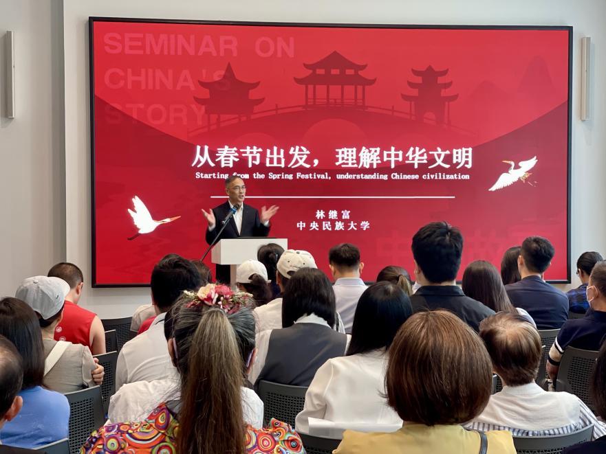 在講座中,林繼富教授圍繞“春節(jié)”這一中華優(yōu)秀傳統(tǒng)文化的重要載體,從文化史、民俗學(xué)與社會記憶等角度,系統(tǒng)闡釋中華文明的精神內(nèi)涵與價值理念,助力海外民眾深化對中華文化的理解與認(rèn)同。
