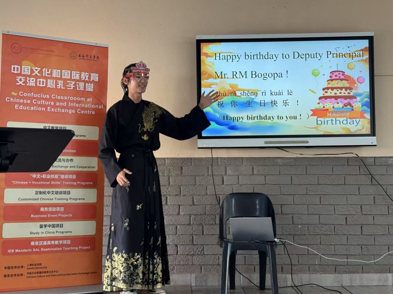 孔子課堂中方院長(zhǎng)戴文紅教授也在致賀辭中指出,國(guó)際中文日不僅是慶祝語(yǔ)言的節(jié)日,更是中外青年人文交流的重要平臺(tái)。她強(qiáng)調(diào),中文為南非學(xué)生提供了邁向更廣闊舞臺(tái)的機(jī)會(huì),無(wú)論是申請(qǐng)獎(jiǎng)學(xué)金、赴華留學(xué),還是回南非就業(yè),學(xué)習(xí)中文都將為他們創(chuàng)造更多人生可能。