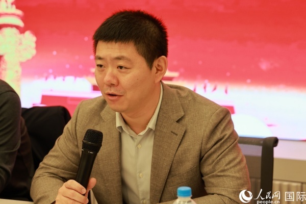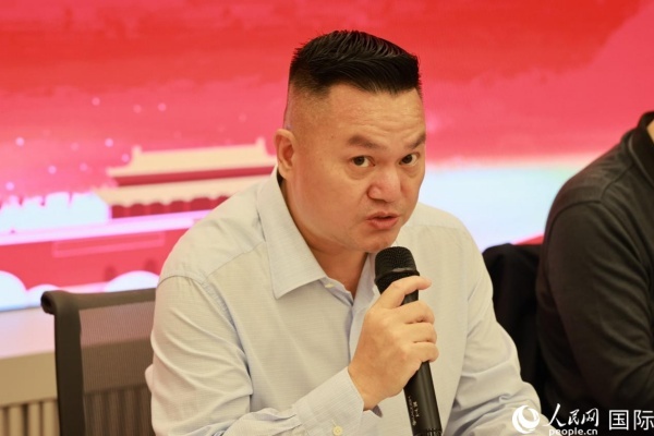 巴西和統(tǒng)會會長張小春在座談會上致辭。人民網記者 陳海琪攝